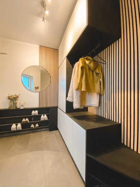 Aber auch Sonderlösungen durch z.B. Staubsaugroboter oder Technikschränke  sind sauber integrierbar und verschwinden hinter angepassten Nischen. So wie diese Garderoben es zeigen.